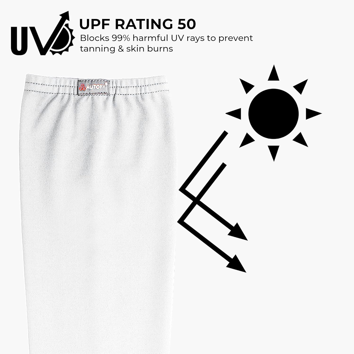 Autofy Pro-Fit 240 GSM Outdoor Indoor Use Unisex Arm Sleeves UV Tan Protection for Men Women Children with Compression & Cooling Effect (Pack of 2-4pcs) (White)