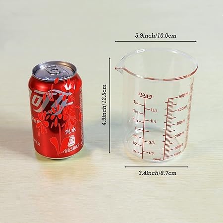 MGLASS – Glass Measuring Cup Set,High Borosilicate Glasss Liquid Measuring Cups, Dishwasher, Freezer, Flameproof, Microwave, and Preheated Oven Safe, Essential Kitchen Tools (500ml / 2 Cups)