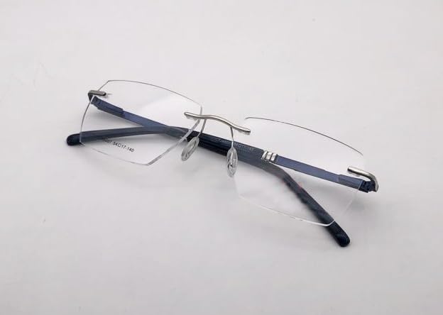 RSINC RimLess frame/eyeglass/Spectacle, Optical, Metal For Men And Women, Modern,Unisex, Business, Collage, Fashion, School, Ladies, Sports, ASN Silver Blue TJ46007 54-17-140 IB 9